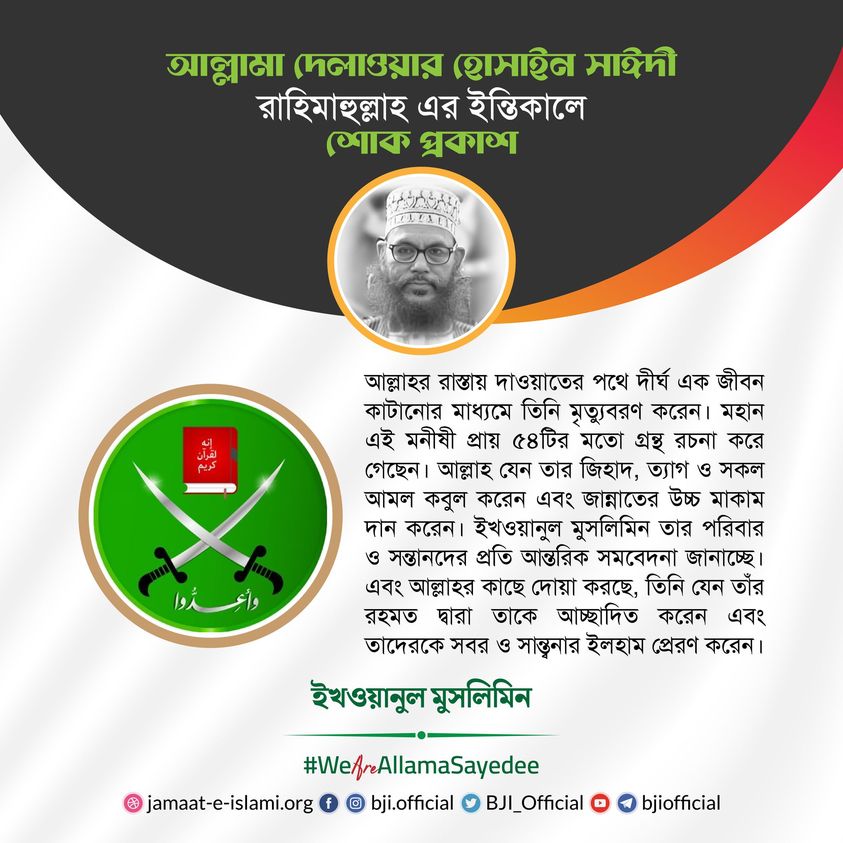 আল্লামা সাঈদী রহ.-এর শাহাদাতে ‘ইখওয়ানুল মুসলিমিন’-এর শোক প্রকাশ।