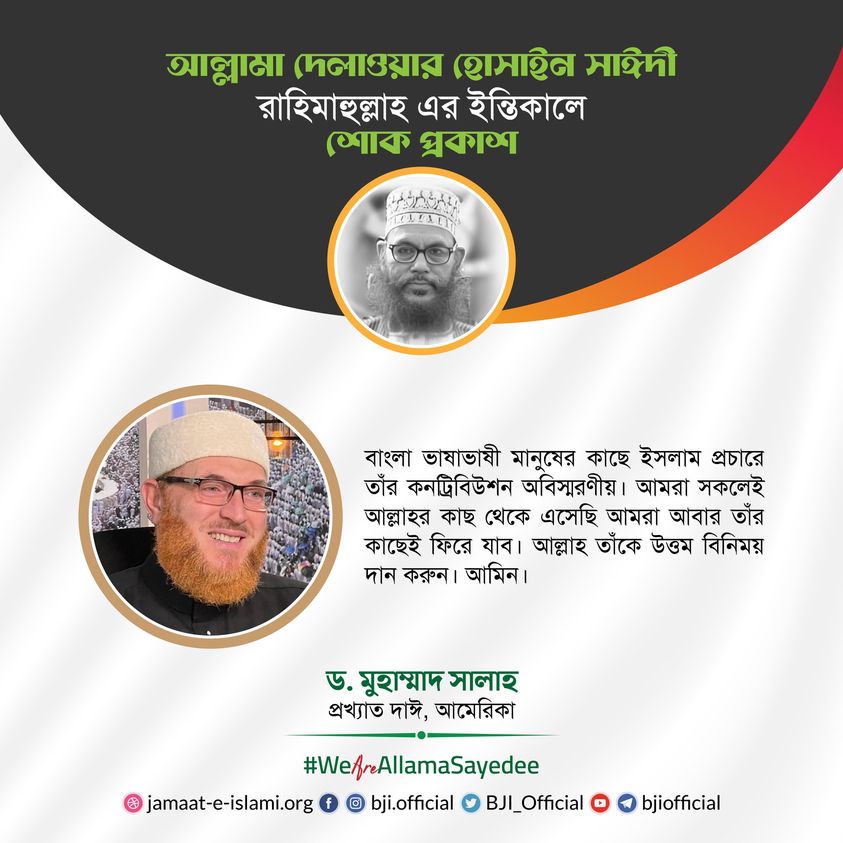 আল্লামা সাঈদী রহ.-এর শাহাদাতে প্রখ্যাত দাঈ ‘ড. মুহাম্মদ সালাহ’-এর শোক প্রকাশ।
