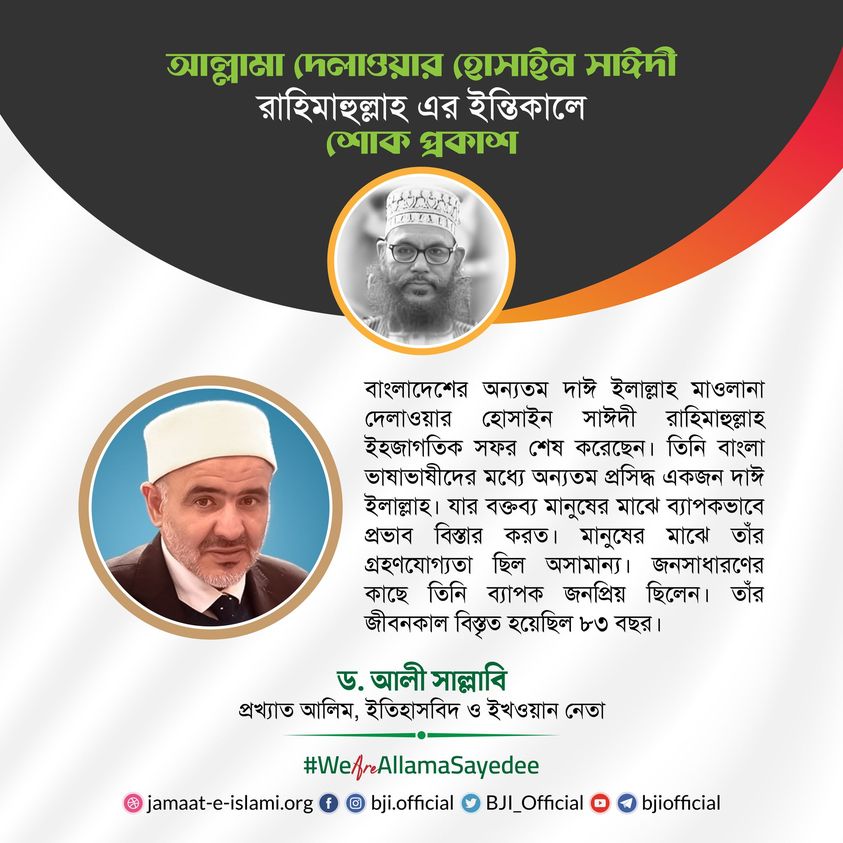 আল্লামা সাঈদী রহ.-এর শাহাদাতে প্রখ্যাত আলিম, ইখওয়ান নেতা ‘ড. আলী সাল্লাবি’-এর শোক প্রকাশ।